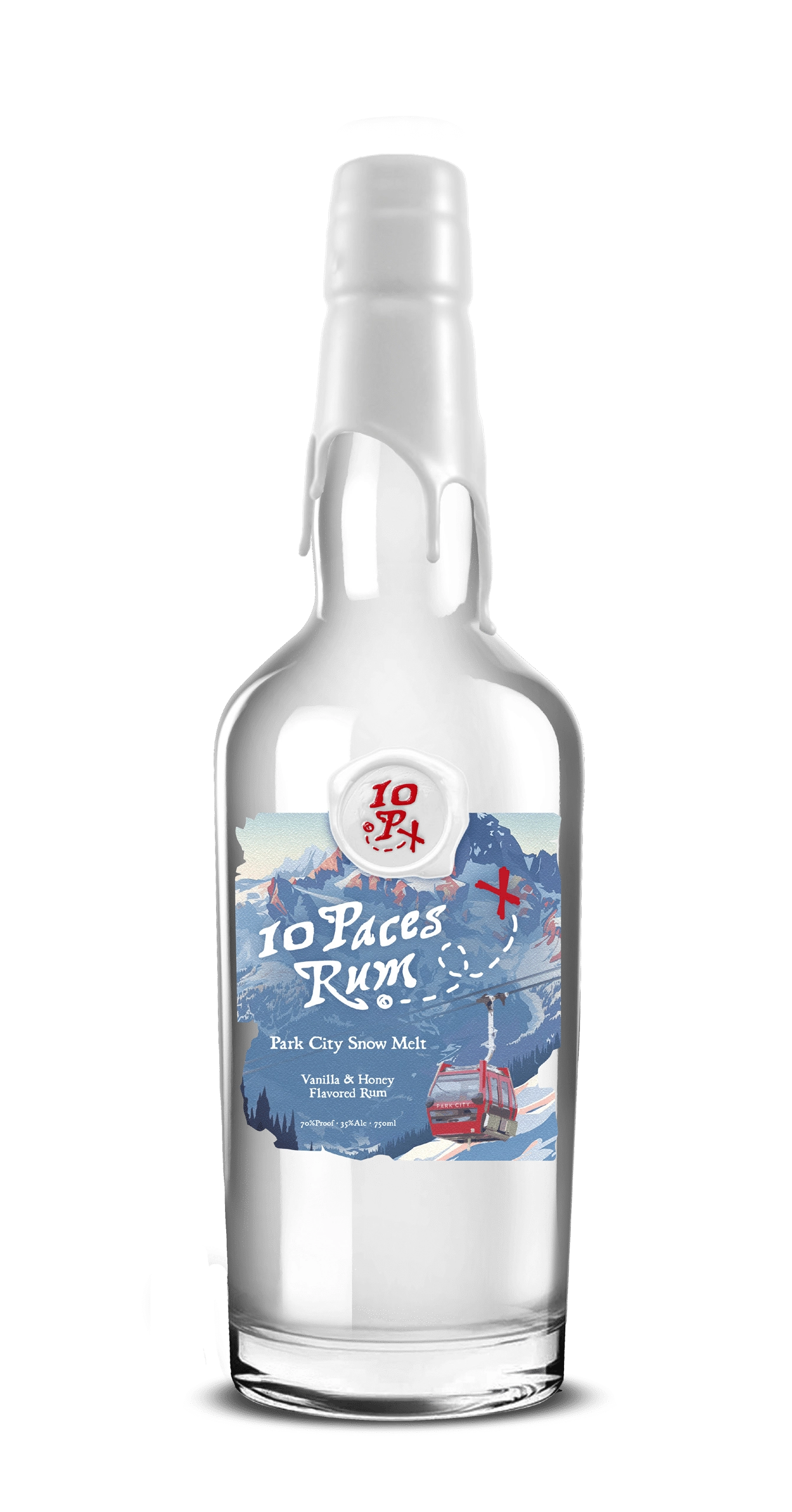 Ten Paces White (Park City Snow Melt) is a crisp, clear rum inspired by the alpine air of Utah’s powder country—infused with a hint of vanilla and real snowmelt from Park City. A touch of honey adds roundness without tipping the scale into sweetness, letting the clean character shine. Light, bright, and endlessly sippable, it’s your bottle of warmth no matter the season.